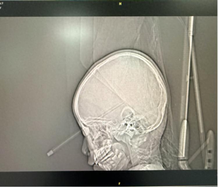 影像检查显示配资114,铅笔从女孩眼中深入脑部。重医附属儿童医院供图